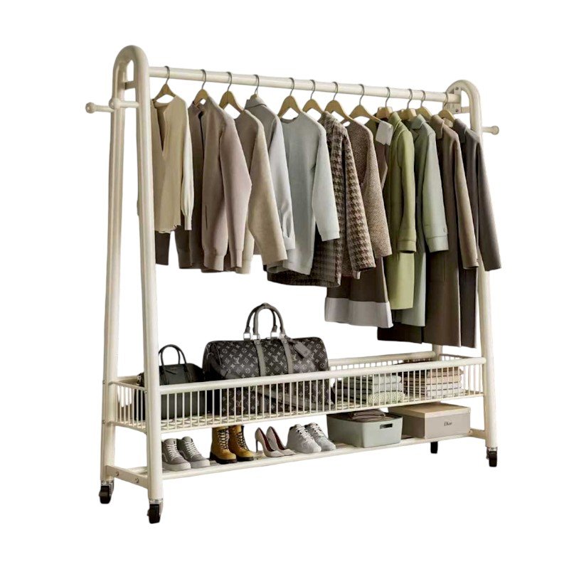 Αναβαθμίστε την οργάνωση του χώρου σας με την τροχήλατη κρεμάστρα δαπέδου. Κατασκευασμένη από ανθεκτικό μέταλλο, προσφέρει ευελιξία και αντοχή. Διαθέτει δύο πρακτικά ράφια για παπούτσια και αξεσουάρ, καθιστώντας την ιδανική λύση για την είσοδο ή το υπνοδωμάτιο. Οι διαστάσεις της (170 x 100 x 40 cm) εξασφαλίζουν επαρκή αποθηκευτικό χώρο.