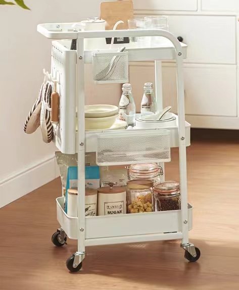 Η μεταλλική ραφιέρα τρόλεϊ 3 επιπέδων σας προσφέρει πρακτικότητα και ευκολία στη μετακίνηση. Ιδανική για κουζίνα, αποθήκη και μπαλκόνι, διαθέτει υψηλή χωρητικότητα, περιστρεφόμενες ρόδες και ειδικά ράφια για μαχαιροπίρουνα. Με την ανθεκτική μεταλλική κατασκευή της και τον εργονομικό σχεδιασμό της, εξοικονομεί χώρο και προσφέρει σταθερότητα. Με βάρος μόλις 2 kg, η μετακίνηση της είναι εύκολη και ασφαλής.